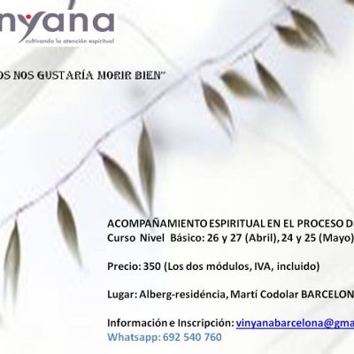 Vinyana es una Asociación constituida sin ánimo de lucro cuya misión es atender los aspectos espirituales relacionados con el proceso de morir.