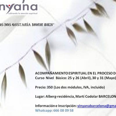 Vinyana es una Asociación constituida sin ánimo de lucro cuya misión es atender los aspectos espirituales relacionados con el proceso de morir.