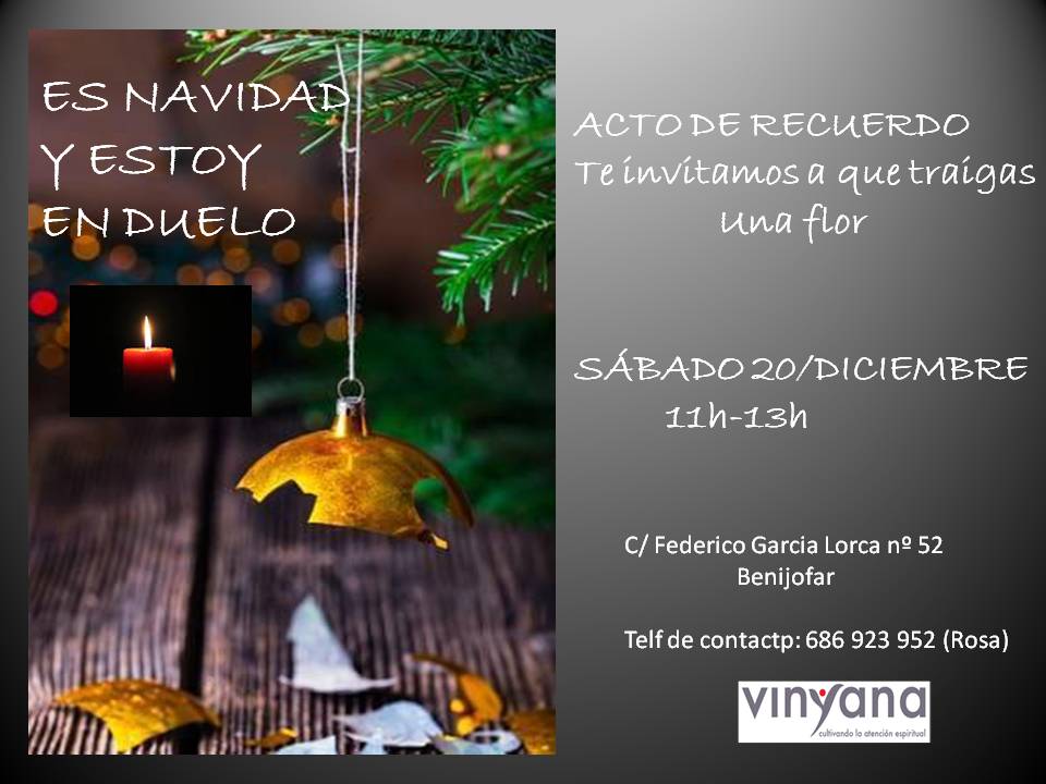 El próximo sabado 20 de dieciembre/ 2025, tendrá lugar un encuentro en Benijofar (Alicante).»Es Navidad y estoy en duelo «