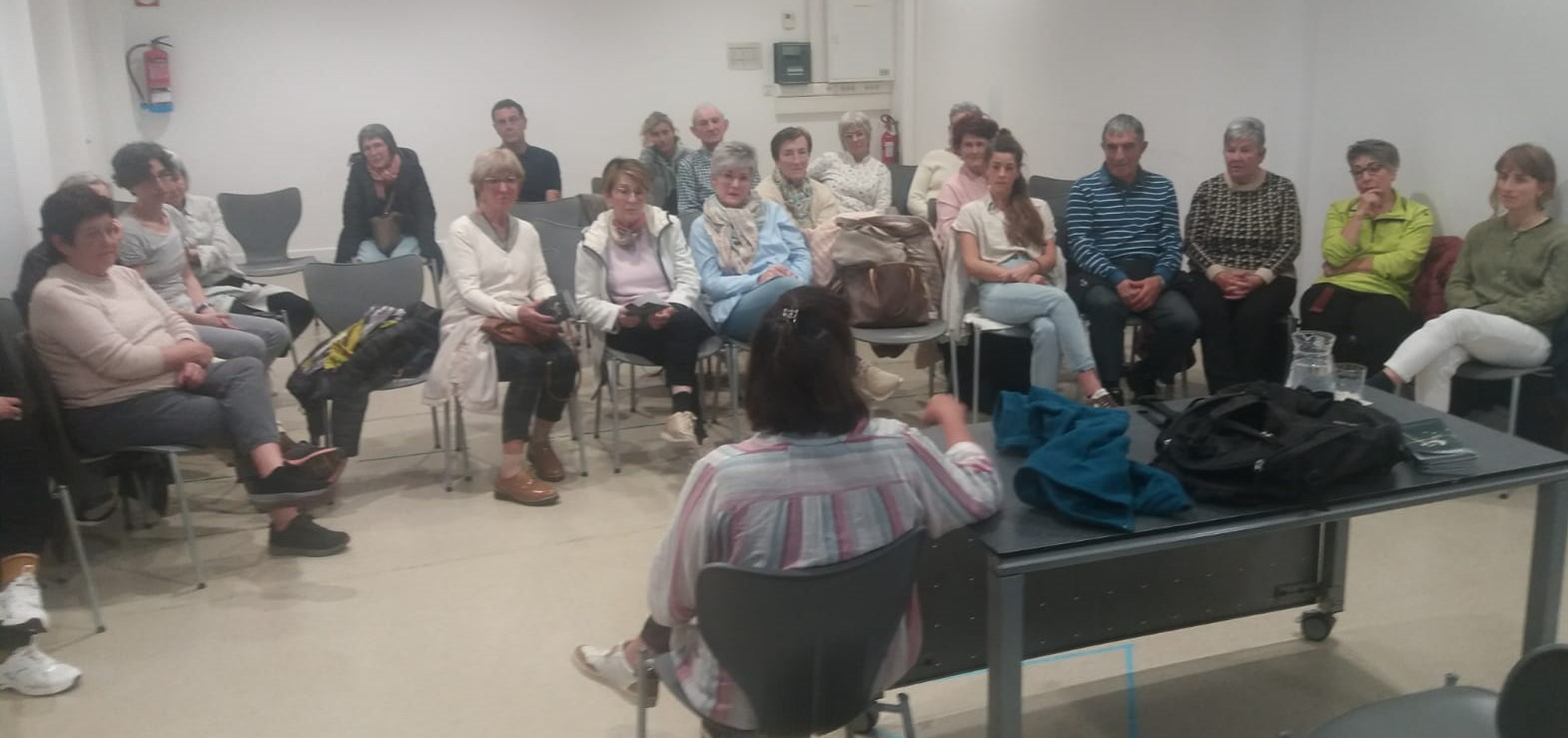 En San Sebastián, en la sala de cultura del B° de Martutene nos juntamos en total 27 personas muy participativas a la hora de compartir entre tod@s el terreno del acompañamiento espiritual en el proceso de morir.