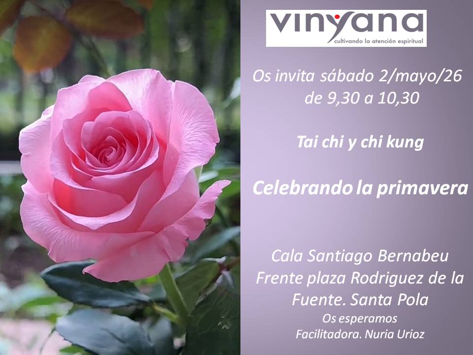 El próximo sábado 02/mayo/26, invitamos a participar a los compañeros, amigos y simpatizantes de Vinyana al encuentro «Celebrando la Primavera», en la playa en Santa Pola, a la práctica corporal de Tai Chi y Chi kung.